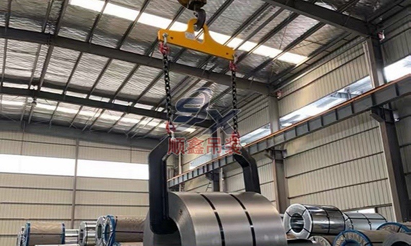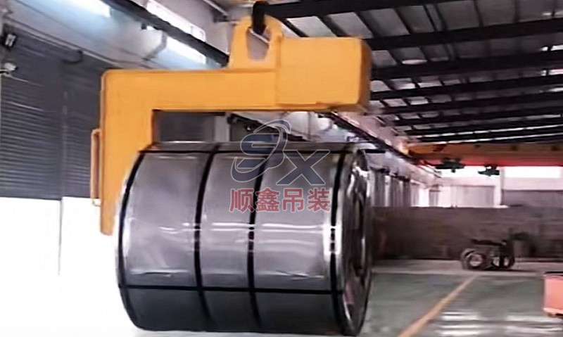 C型吊具適用于鋼卷的水平吊運(yùn),由吊具體和配重鐵組成。主體部分由合金鋼和鋼管拼接而成,截面為箱型結(jié)構(gòu),配重鐵起調(diào)節(jié)吊具平衡的作用,使吊具和被吊物的重心在一條線內(nèi)。載荷范圍:3.2-32噸。